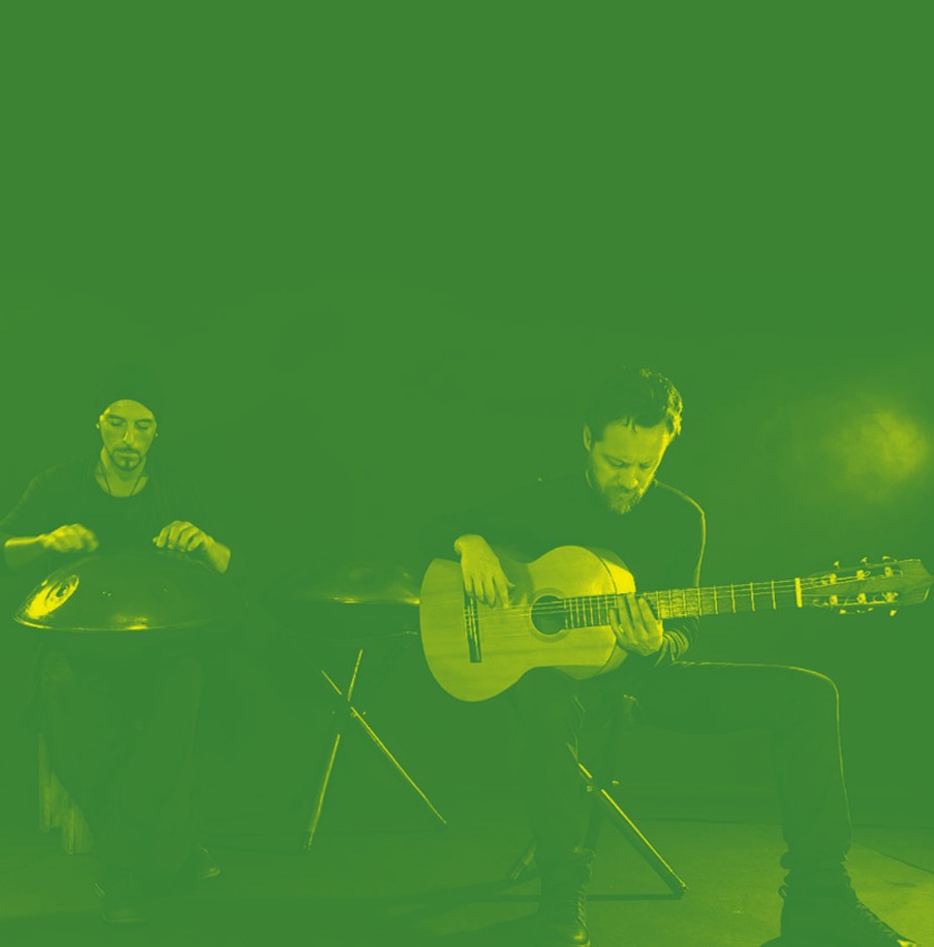 They combine the sounds of their instruments to give voice to original compositions with evocative atmospheres and influences that drow on the enormous heritage of world music. The sound of the hang merges with the violin’s timbre and the guitar with the flute’s.
